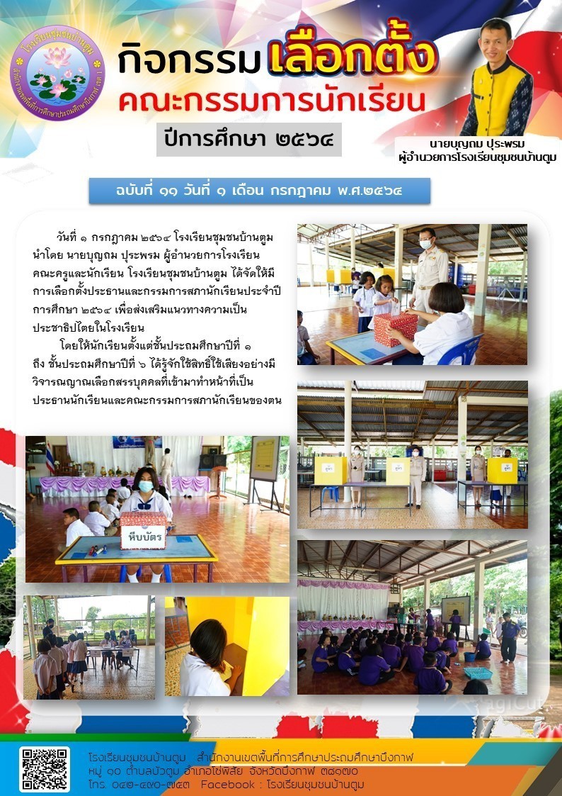 โรงเรียนชุมชนบ้านตูม เรื่อง จัดให้มีการเลือกตั้งประธานและกรรมการสภานักเรียนประจำปีการศึกษา 2564