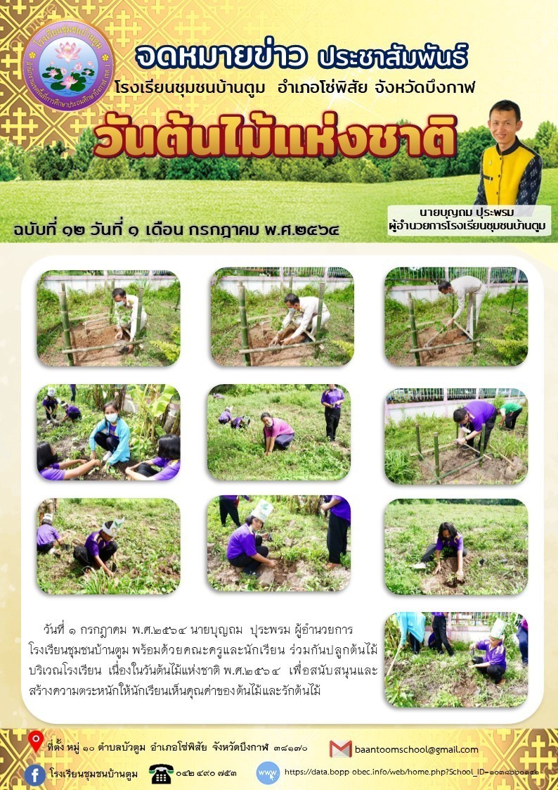 โรงเรียนชุมชนบ้านตูม ร่วมกิจกรรมการปลูกต้นไม้บริเวณโรงเรียน เนื่องในวันต้นไม้แห่งชาติ พ.ศ.๒๕๖๔